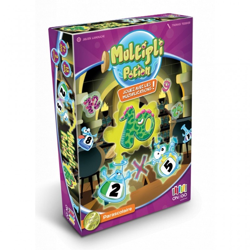 Dans Multipli Potion, vous incarnez un magicien dont le but est d’être le premier à capturer 5 monstres adverses. Pour cela, multipliez les nombres inscrits sur vos potions magiques pour obtenir le résultat correspondant à la valeur d’un monstre ennemi.