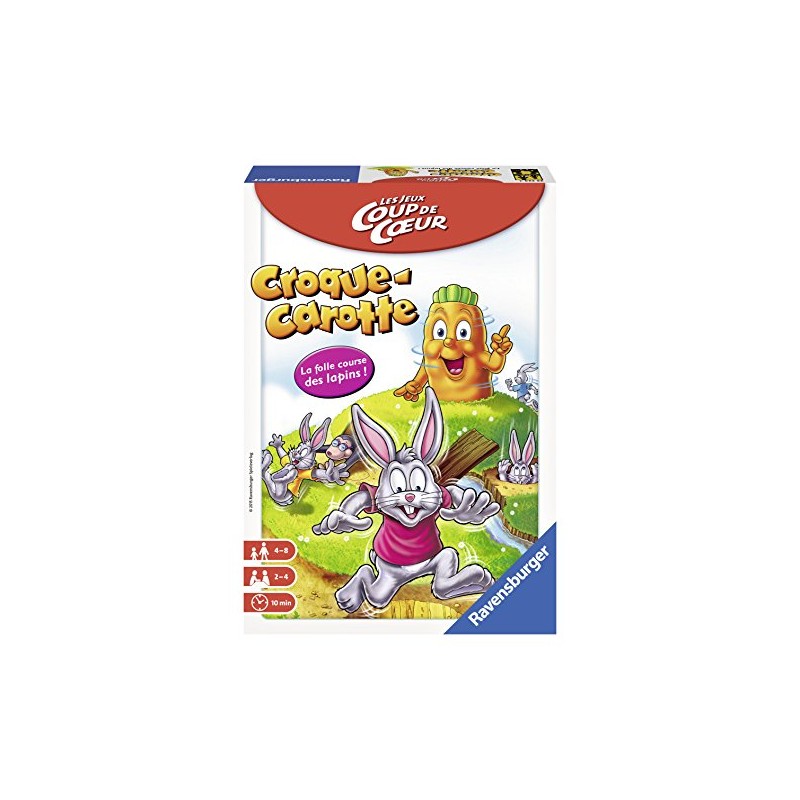 Croque carotte plonge votre enfant au coeur d'une course de lapins totalement déjantée ! C'est la course à la carotte ! Chaque lapin se dépêche pour être le premier à croquer la carotte mais attention ! Des trous s'ouvrent sous leurs pattes, les ralentissant ainsi brutalement dans leur course folle !
