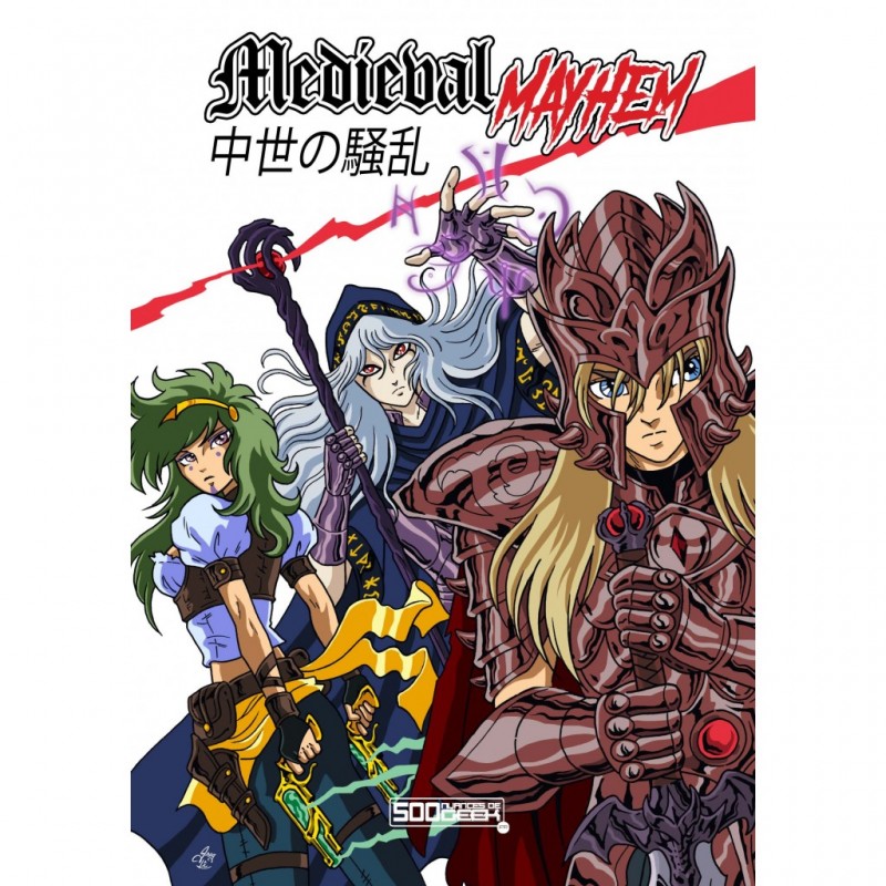 Medieval Mayhem est un hack médiéval-fantastique d'Apocalypse World où vous incarnez des "héros" alliés de circonstance et motivés par leurs propres objectifs personnels, et qui sauvent le monde par inadvertance en chassant des trésors, le tout lors d'aventures hautes en couleur et riches en péripétie où l'on ne sait jamais ce qui vous attend derrière la prochaine colline. Medieval Mayhem est inspiré par les anime med-fan aussi bien classiques (Lodoss, Slayers, Escaflowne) que récents, et vous propose de créer vos propres aventures riches en clichés animesques et où l'on peut passer rapidement des rires aux larmes. Vous n'êtes peut-être pas les héros dont les gens ont besoin pour sauver le royaume, mais il n'y a personne d'autre pour le faire et vous n'avez pas l'intention de vous défiler.